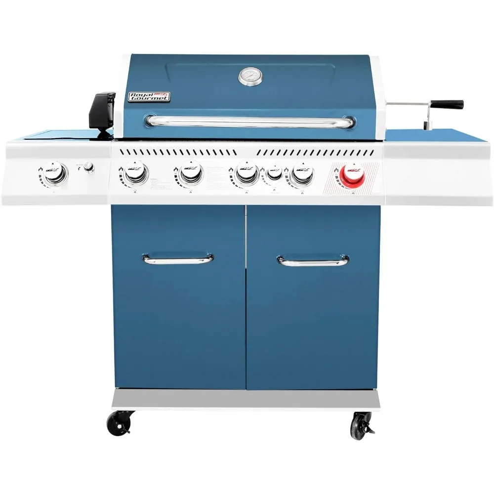 5-Burner BBQ Cabinet Style Propane Gas Grill with Rotisserie Kit, Sear Burner, Rear Burner and Side Burner