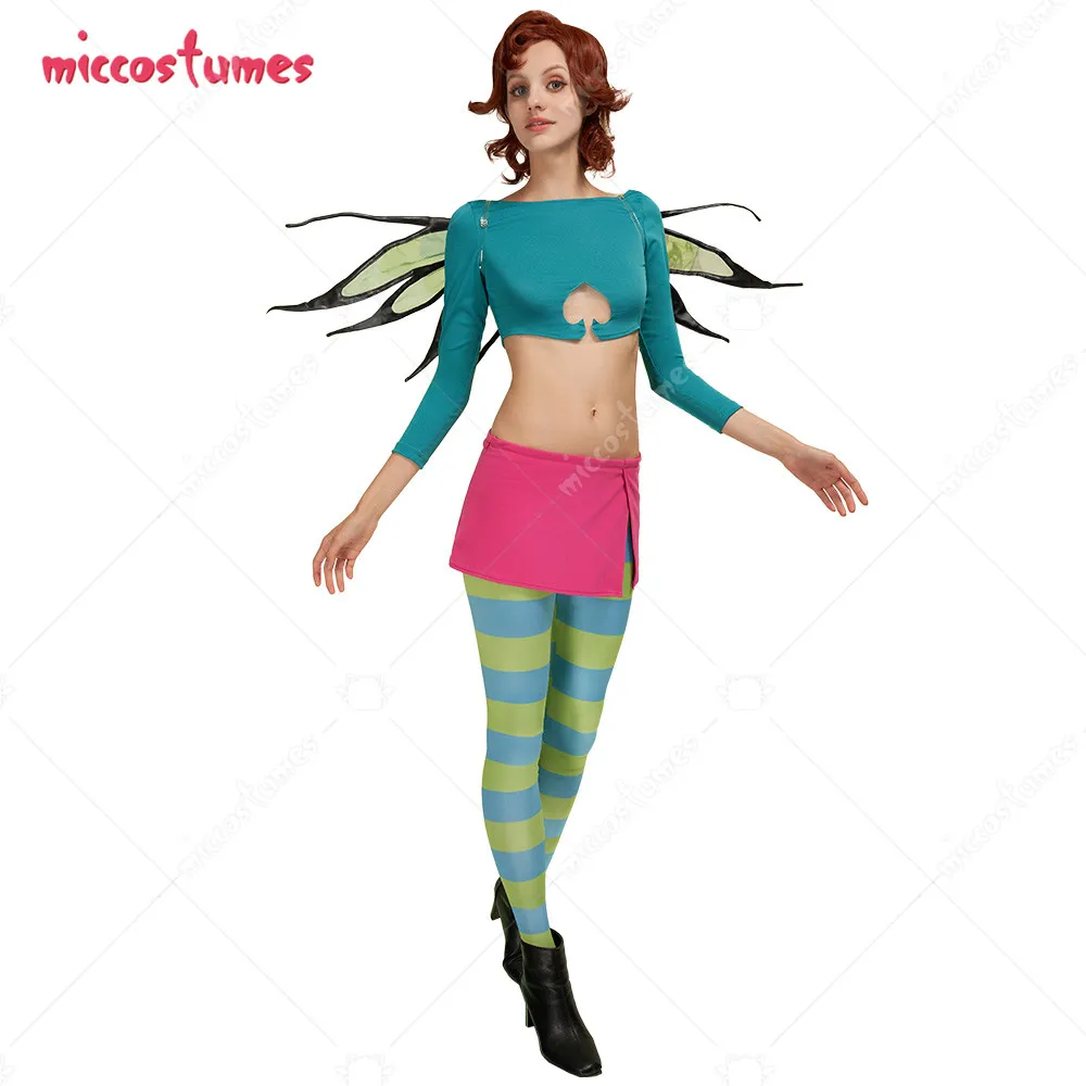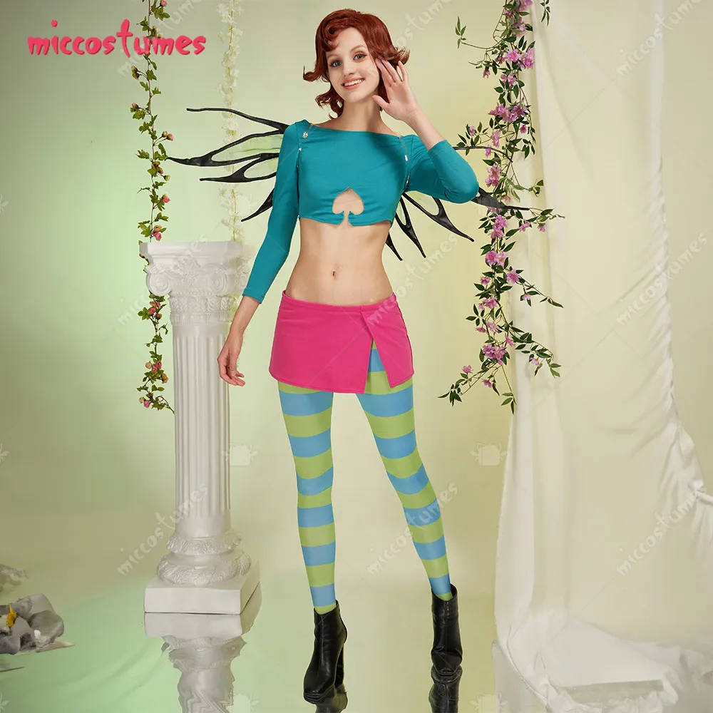 womans Cosplay Costume Crop Top and Skirt with Leggings and Wings