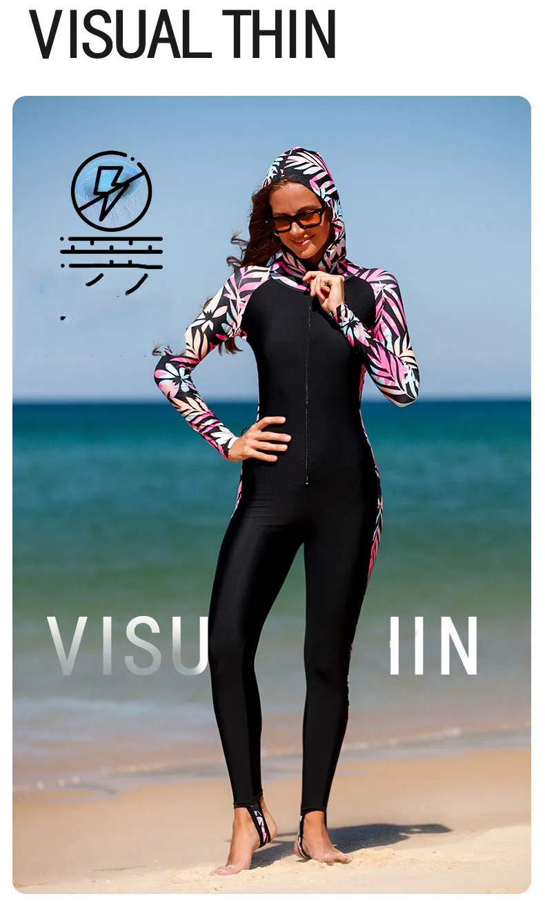 Oulylan 2024 Women's Summer Snorkeling Swimsuit One Piece Swimsuit Front Hooded Zipper Surf Swimwear Diving Suit Beach Wear